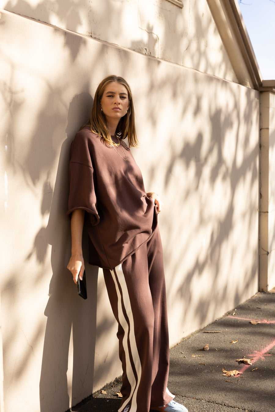 The Mason Tee- featuring raw hemlines and an oversized design. Pair back with the Marley Pants or Maya Mini Skirt.